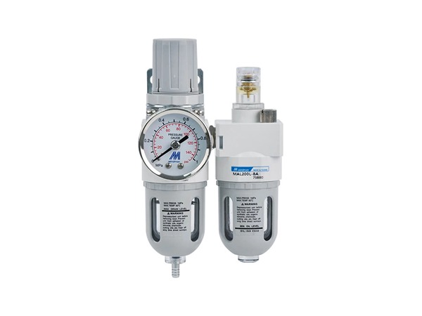 組件: MAFR200, MAL200,配管口徑尺寸: 1/8, 1/4,使用壓力范圍:0.05~1 MPa,耐壓力: 1.5 MPa。